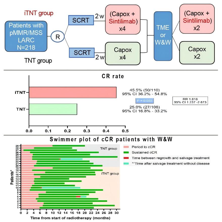 图 术前短程放疗联合PD-1抑制剂和化疗促进局晚期直肠癌肿瘤显著退缩