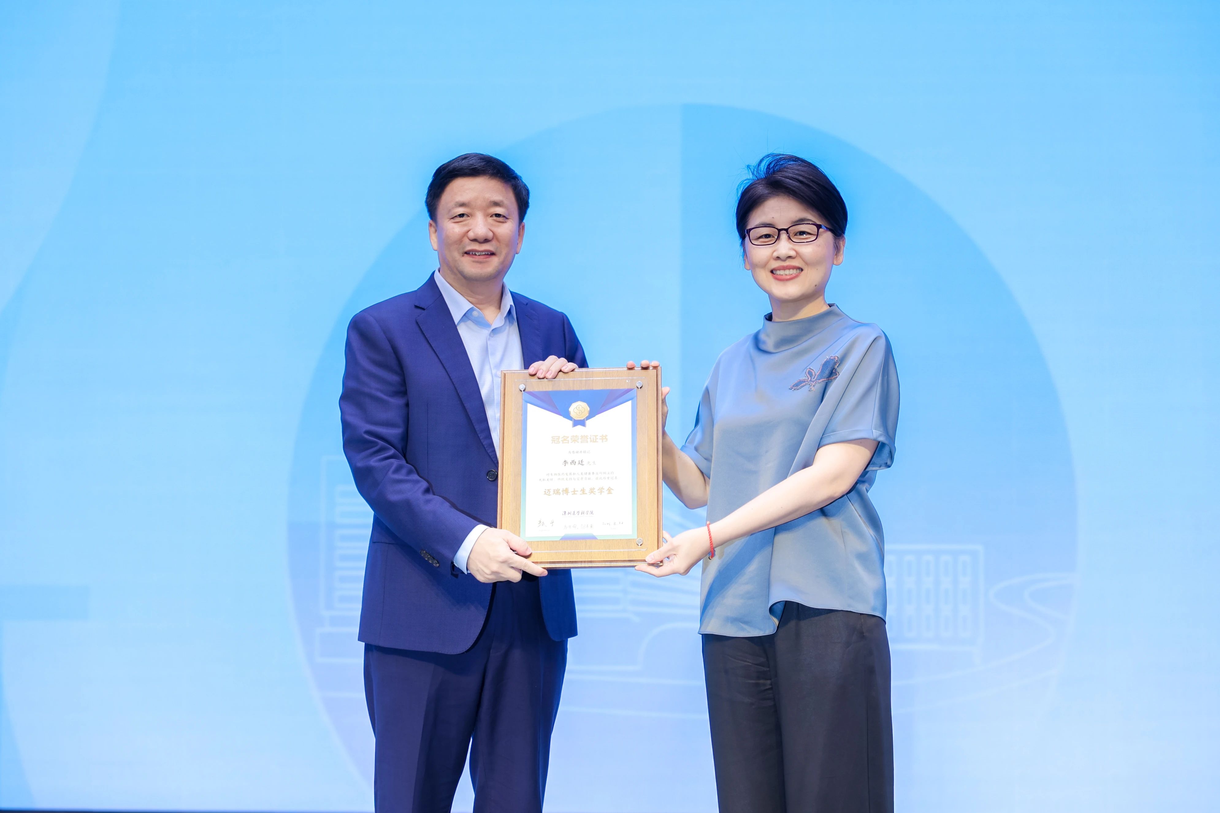 在开学典礼现场,一批关注生命科学发展、心系科研人才培养的社会热心人士受邀出席。山西锦波生物医药股份有限公司董事长杨霞作为捐赠人代表上台致辞,传递了企业支持科研、助力教育与人才发展的坚定信念和务实担当。为致敬社会各界对生命科学的多元化投入与立体化支撑,凯旋国际(中国)官方网站 特设立“锦波博士生奖学金”与“迈瑞博士生奖学金”。颜宁院长分别向杨霞董事长、深圳迈瑞生物医疗电子股份有限公司高级副总裁李新胜颁赠冠名荣誉证书与感谢状。这份凝聚社会厚望的关怀,不仅超越物质层面的保障,更深刻彰显对科研初心的守护和对医学创新力量的深切期许。
